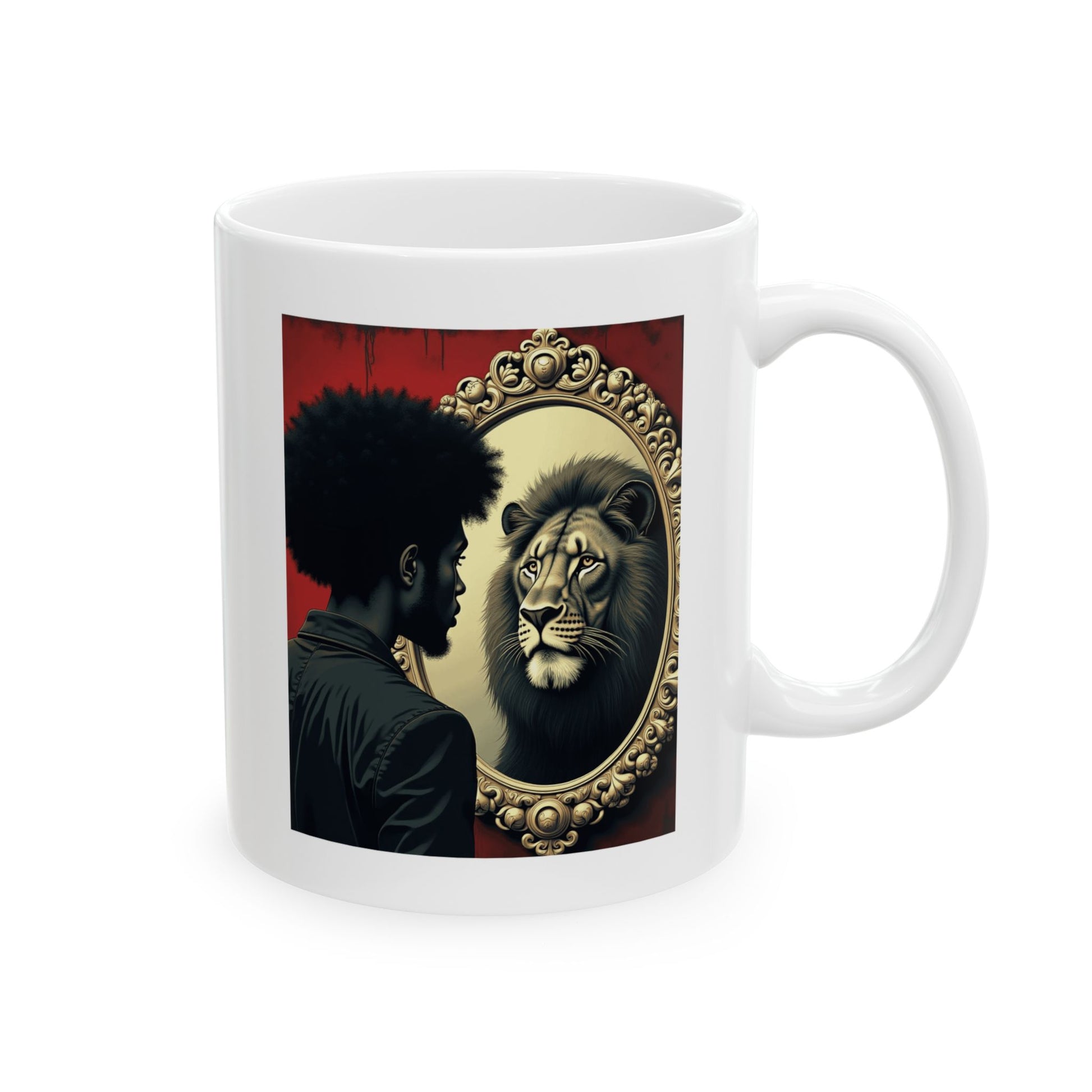"Lion-dentity" is more than a reflection — it's a divine reminder. In this powerful design, a Black man gazes into a mirror and sees the face of a lion staring back. Not just any lion — the Lion within. A symbol of God-given strength, ancestral power, and the spirit that cannot be tamed.
